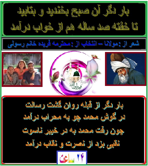 اين سروده هرچند ارزش شعرى و پختگى درخور توجهى ندارد ولى پيام ان ممكن بمثابه تلنگرى بر پهلوى غفلت زده ى و پشنگ ابى بر صورت خواب ربوده ى باشد ، بناءً. عزيزانيكه فرصت و علاقه دارند انرا روى برگه ى فيسبوك خويش بگذارند اميد ميرود تا عده ى را از خواب غفلت بيدار كند. قبلاً از محبت عزيزان سپاسگذارم.