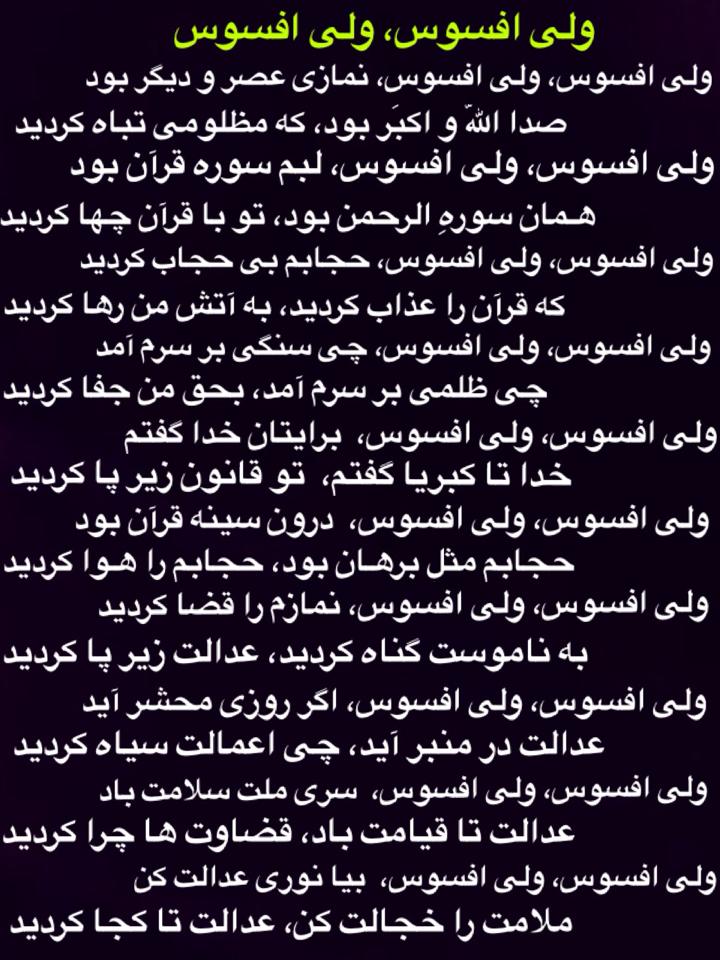 ملای منافقی که بدستور یک تعداد بادارانش فرخنده خواهر گرامی مارا توسط یک تعداد و حشی ها به شهادت رساند و بعدا سوختاند . لعنت به این ملا