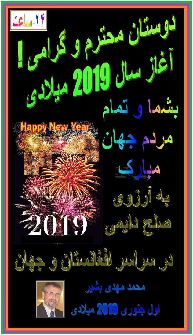 با عرض سلام به امید صحت و سلامتی تمام هموطنان محترم ، دوستان و همکاران گرامی سایت 24 ساعت و فیسبوک های آن . نسبت اینکه از چند روز صحتم چندان خوب نبود و نتوانستم که این مطلب را که قبلا آماده کرده بودم و با مطالب عزیزانیکه برایم رسیده بود در روز اول سال 2016 میلادی یعنی روز جمعه از طریق سایت 24 ساعت نشر و تفدیم عزیزان کنم و تنها مختصرآ این را در فیسبوک گذاشتم که از غافله عقب نمانم از همه معذرت میخواهم و از دوستانیکه با ارسال کارت های زیبا ، تیلفونی ، ایمیل و پیام های مقبول شان ، سال نو میلادی 2016 را برایم تبریک عرض نموده تشکر میکنم و برای همه و خانواده های محترمشان یک سال مملو از خوشی ، صحتمندی و صلح و امنیت در سر کشور بدون هر نوع تفرقه و تعصبات مذهبی ، زبانی ، قومی ، منطقوی و نژادی آرزو میکنم. همیشه موفق و زنده باشید