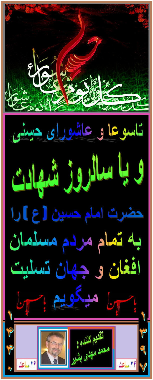 دراخیرچون ایام عزاداری امام حسین(ع)میباشد،بیاد مصیبتی که بیدار سازجهانیان وحرکت بخش دلها بسوی حق وعدالت است،پارچه شعری راازشاعروعارف مشهوروطن عزیزما مرحوم غلام سرور”دهقان” خدمت تقدیم میدارم.
