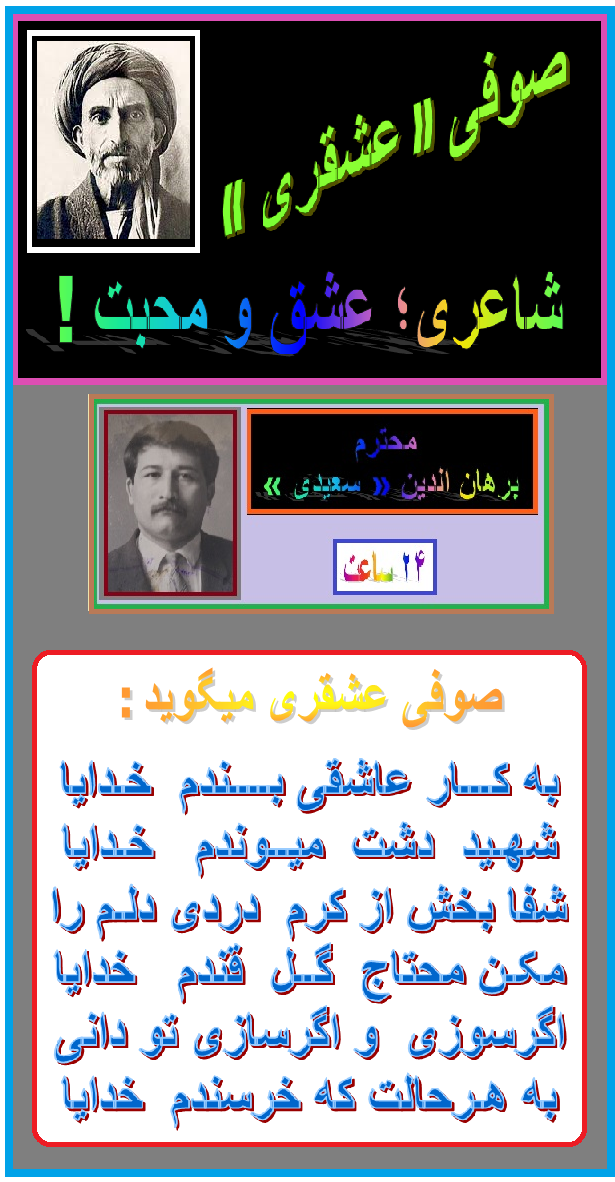 ” از انجمن ادبی کابل متشکرم که بسا عقده هایی که موقوف به فنون شعری است از مقالات برادران ادبی حل کرده ام ، چرا که من عاجزه به واسطه عذر ستر و سخت گیری شوهر ، کسب کمالات خود را نزد دانشوران وطن تکمیل کرده نمی توانم و بهترین معلم و ادیب بعد از فوت پدر بزرگوارم مقالات جراید ، سالنامه ها و مجلات وطن بود که به من می رسید . خودم در شهر کهنه به سرایی می باشم که از شهر مذکور کهنه تر است نشیمن دارم. مثل محبوسی که به کلی از عالم بی خبر باشد. با آن هم برای بیداری قوم برای تجدد خصوصآ طبقه نسوان می کوشم ، می گویم ، می شنوانم ، می سرایم تا بخدا بخواهد به منزل مقصود برسم. “