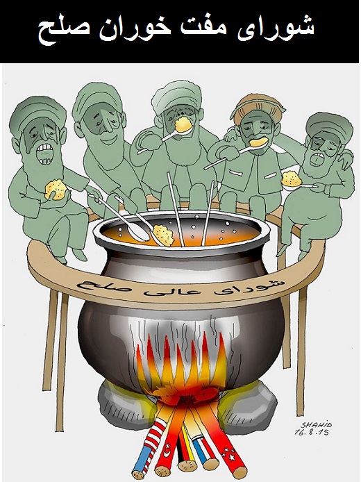 اینها اعضای شورای عالی صلح اند که چندین سال تحت ریاست برهان الدین ربانی و یک تعداد مفت خوار های دیگر بنام صلح کار میکردند و حتی یک فیصد خدمت هم نکردند به غبر بوجی های دالر را گرفتند و بعد از کشته شدن ربانی این میراثی شد و به صلاح الدین پسرش رسید که فعلا وزیر خارجه و حشت ملی است و او هم کاری در این باره مانند پدرش و رهبر های دولت بی کفایت و حشت ملی نتوانست بکند و حالا ببنیم سیاست کشور را به کجا خواهد برد . در صلح که نمره صفر گرفت.