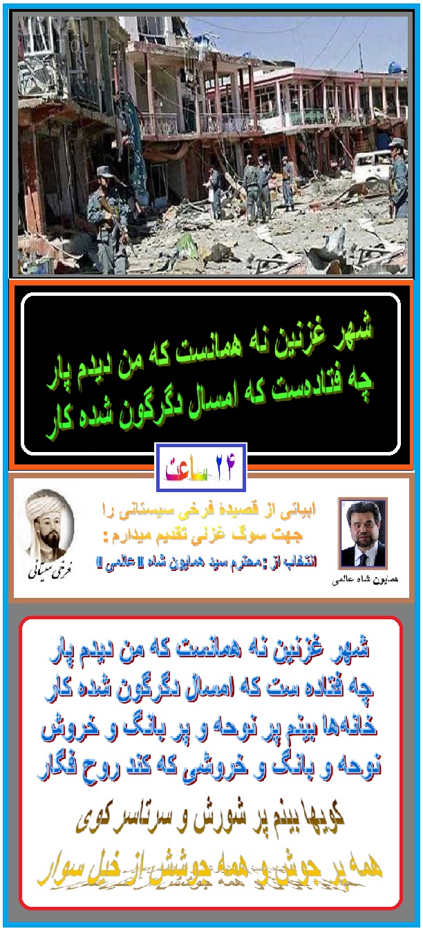 ابیاتی از قصیدۀ فرخی سیستانی را جهت سوگ غزنی تقدیم میدارم:
