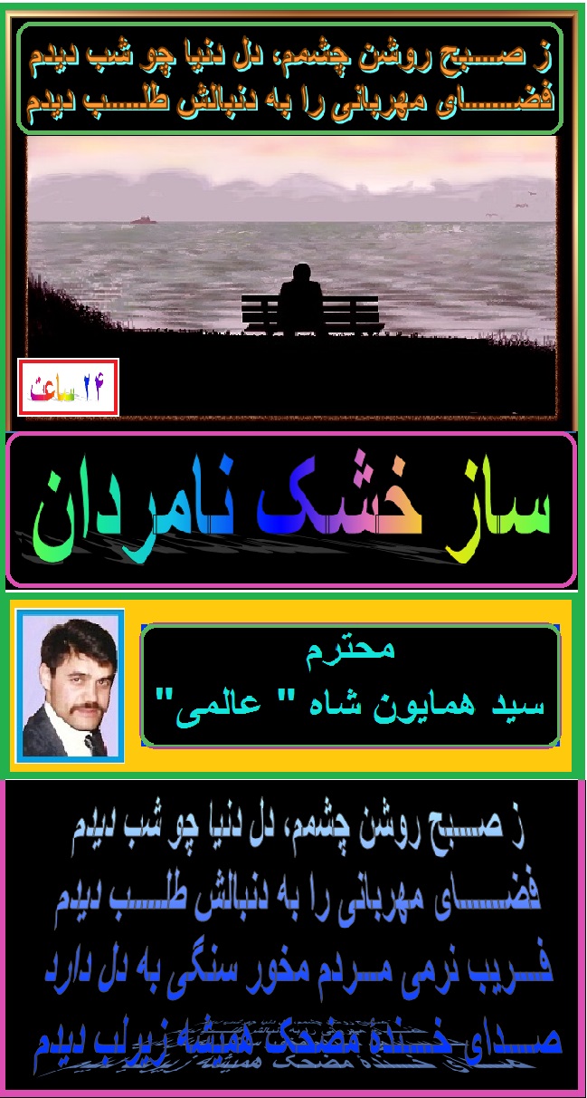 تشکر از برادر گرامی جناب آقای عالمی عزیز ، مقاله زیبا و جالبی را تقدیم خواننده گان عزیز ۲۴ ساعت نموده اید. از شاعران محترم ، نویسنده گان ارجمند و قلم بدستان گرامی تقاضا مینمایم در صورتیکه خواسته باشند سلسله این مقاله را دادامه دهند ، سایت ۲۴ ساعت در نشر آن البته با رعایت عفت قلم وکلام آماده نشر است.