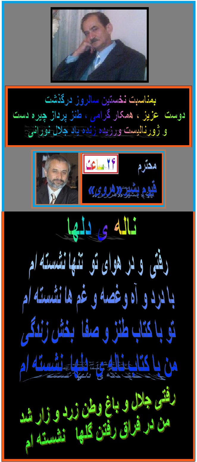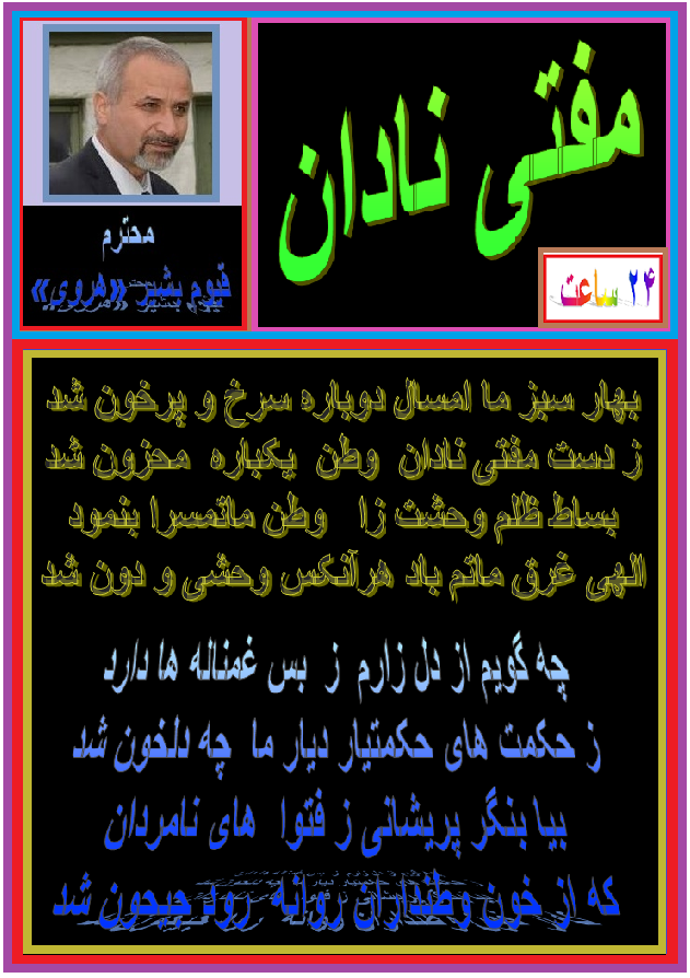 آری ! هزاران هموطن عزیز ما پس از هشتم ثور سوگواراز دست دادن عزیزان شان شدند و میلیون ها تن دیگر شان به جمع غربت زدگان دورازخانه پیوستند و علاوه بر همه اینها ظهورنامیمون طالبان وداعشیان خون آشام بود که همه روزه با استفاده از نام مقدس اسلام به قتل مسلمانان می پردازند و کرسی نشینان بی کفایت کابل همچنان نظاره گراین همه قتل و جنایت بوده وهیچ اقدام عملی انجام نمیدهند.