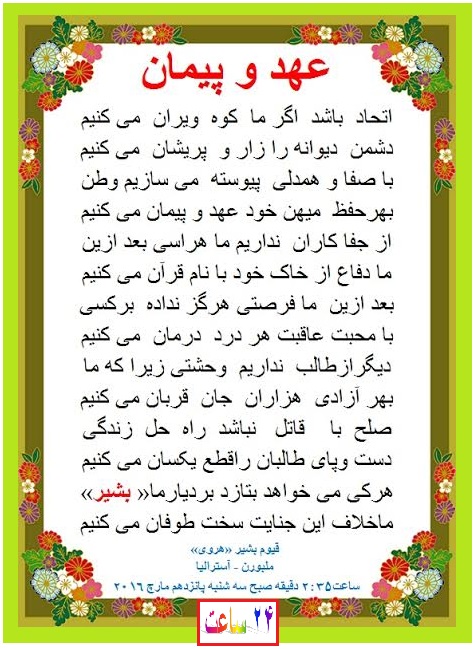 با دریغ و درد بازهم دست جنایت پیشگان طالب بخون تعدادی ازهموطنان عزیز ما آلوده شد و یکبار دیگر طبل رسوایی دولت بی کفایت غنی – عبدالله به صدا درآمد و چهره منحوس طالبها را بیشتر ازپیش آشکارساخت . ضمن آرزوی شادی روح شهداء برمسببین این جنایت هولناک نفرین و لعنت فرستاده از ارگ نشینان بی کفایت کابل می خواهم تا از فرستادن دعوتنامه های به اصطلاح صلح خویش به دشمنان انسانیت دست بکشند ، در غیر آن پاسخگوی همه این جنایات پیهم در کشور خواهند بود.