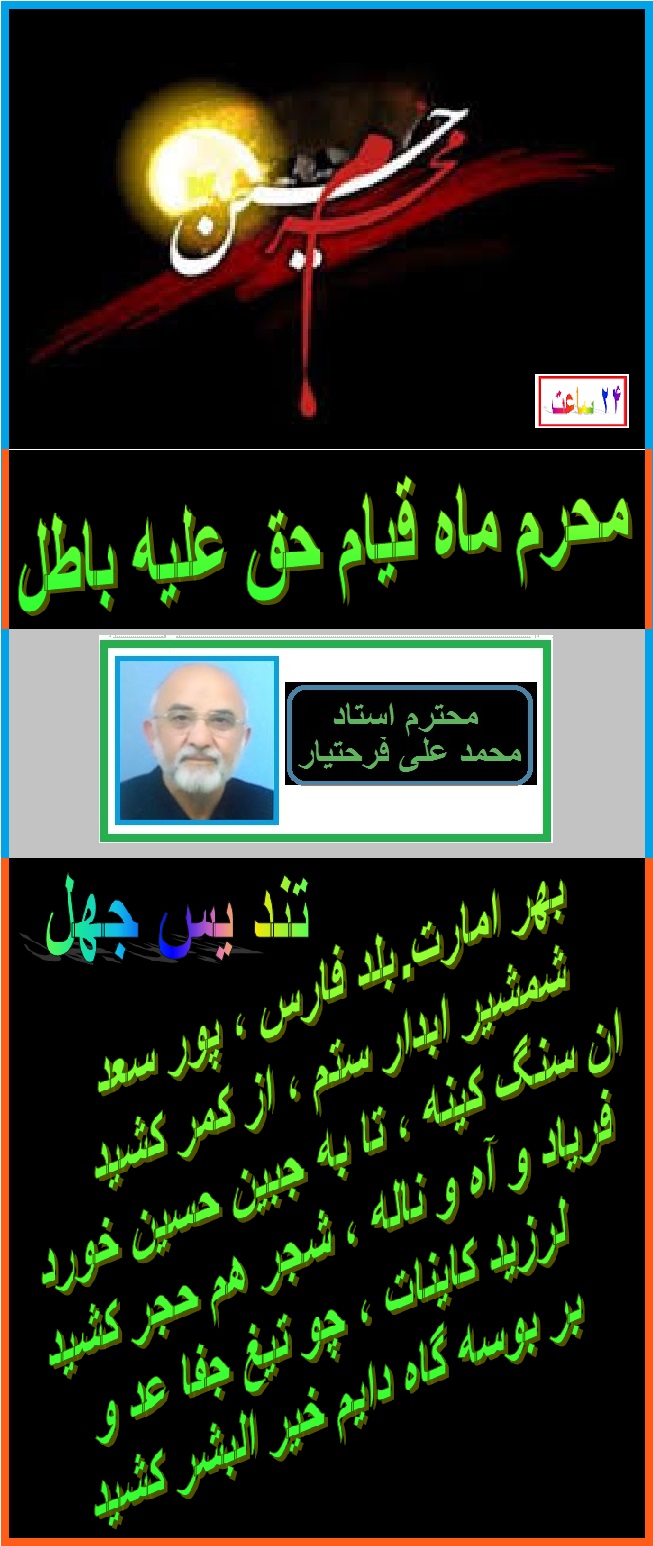 محرم ماه قيام حق عليه باطل است ، ماه كه در ان خون بر شمشير پيروز ميگردد ، به تعبير شهيد علامه بلخى ، رهروان اين قيام فرياد ميزنند كه :