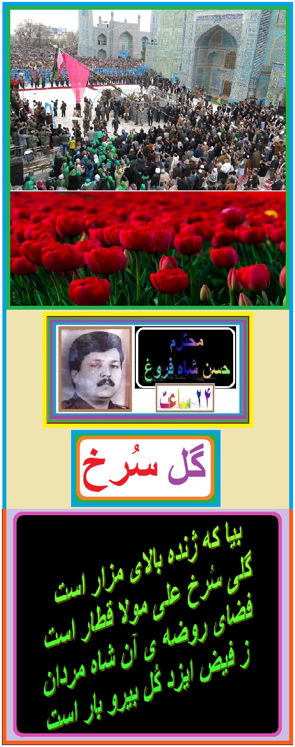 در روز ۲۸ حوت ۱۳۹۳ خورشیدی خواهر عزیز و گرامی ما خانم فرخنده مظلوم توسط یک تعداد از وحشی های اوباش و در راس آن شرف بی شرف بغلانی مربوط تفنگسالاران ، و حامی آن ملا نیازی خایین ، ملای بی غیرت و دروغگو، ملا ها و تعویظ نویس های بی سواد و حلوا خورهای شاه دوشمشیره ، دزد ان و چپاولگران سرگردنه و حامیان آنها در چند صد متری ارگ ریاست جمهوری غنی بی کفایت ودیکر تفنگسالاران و فاسدان او به قتل رسید و بعدآ جسد او را همین وحشی ها ی نا خلف سوختاندند و چند روز قبل مصادف بود به چهارمین سال شهادت این خانم که متاسفانه خونش تا کنون پایمال شده است و دولت وحشت ملی در راس غنی بی کفایت از جانی ها حمایت کرده است .این سروده ها قبلا برایم رسیده بود که متاسفانه نظر به مشکلات مریضی و مریضداری نتوانستم نشر کنم و تشکر از شاعران گرامی آقایان حسن شاه فروغ و قیوم بشیر هروی . روح شهید فرخنده شاد و خلد برین جایش.