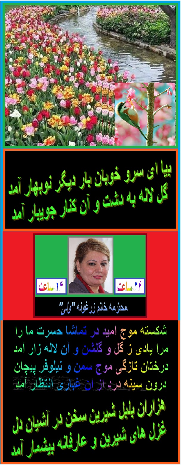 به پيشواز بهار خجسته ۱۳۹۷ خورشیدی این شعر را جدیدآ سروده ام .اميد است قبول خاطر شما عزيزان قرار گيرد . زرغونه “ولى”