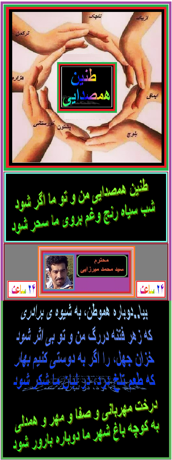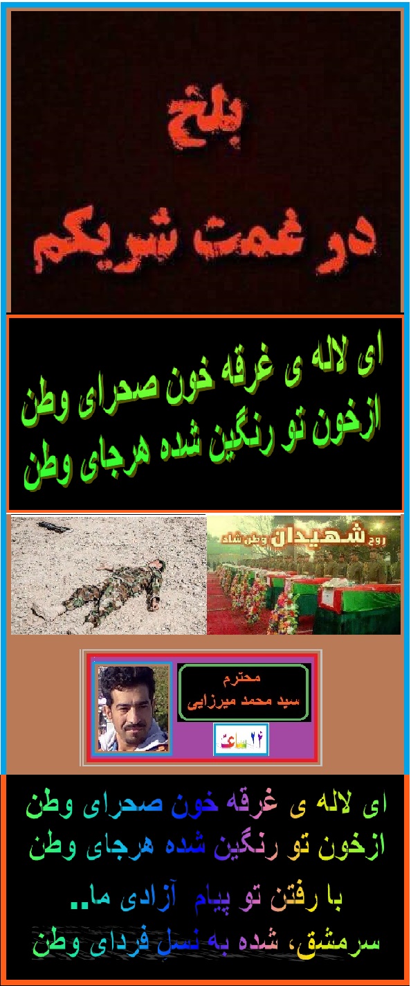 شهادت هموطنان مظلوم و محروم شهرِ “ميرزاولنگ” را به خانواده هاى عزادار و تمام هموطنانم تسليت ميگويم و در غم و اندوه شان خود را شريك ميدارم