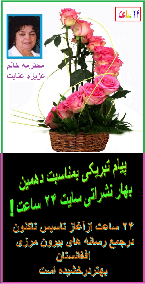 ازآنجایکه سایت وزین و مردمی ۲۴ ساعت دراثر سعی و تلاش مدیرمسئول جناب محمد مهدی بشیروهمکاران نخنیکی آن ازآغاز تاسیس تاکنون درخدمت هموطنان محترم قرارداشته و با خدمات و فعالیت های شبا روزی درجمع رسانه های بیرون مرزی افغانستان بهتردرخشیده است که با مطالب ذوقی، هنری، معرفی شخصیت های فرهنگی ،مضامین اجتماعی، سیاسی، انتقادی واصله ازجانب همکاران قلمی آن با زبان های رسمی دولتی ( پشتوو فارسی دری) فعالیت نموده است که روی این دلیل طی مدت ده سال علاقه مندان زیادی را بخود جلب کرده و طرفداران زیادی دارد.