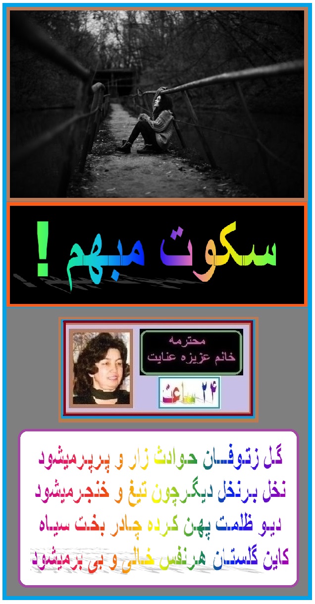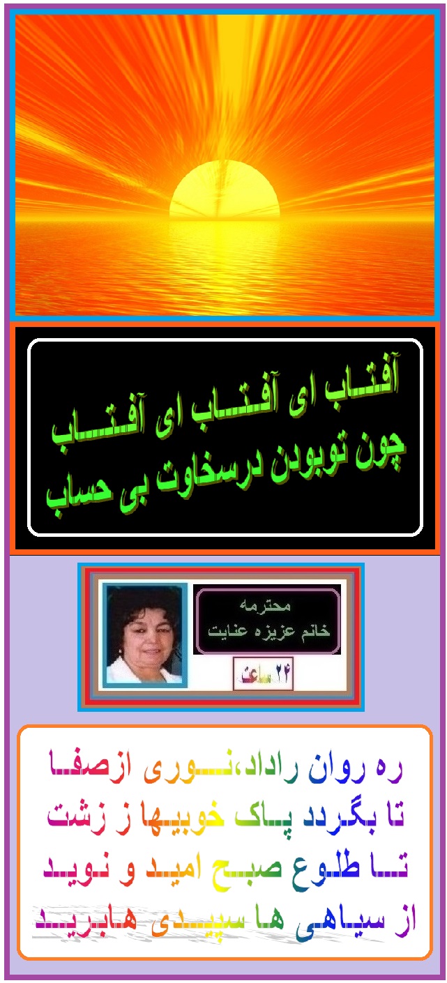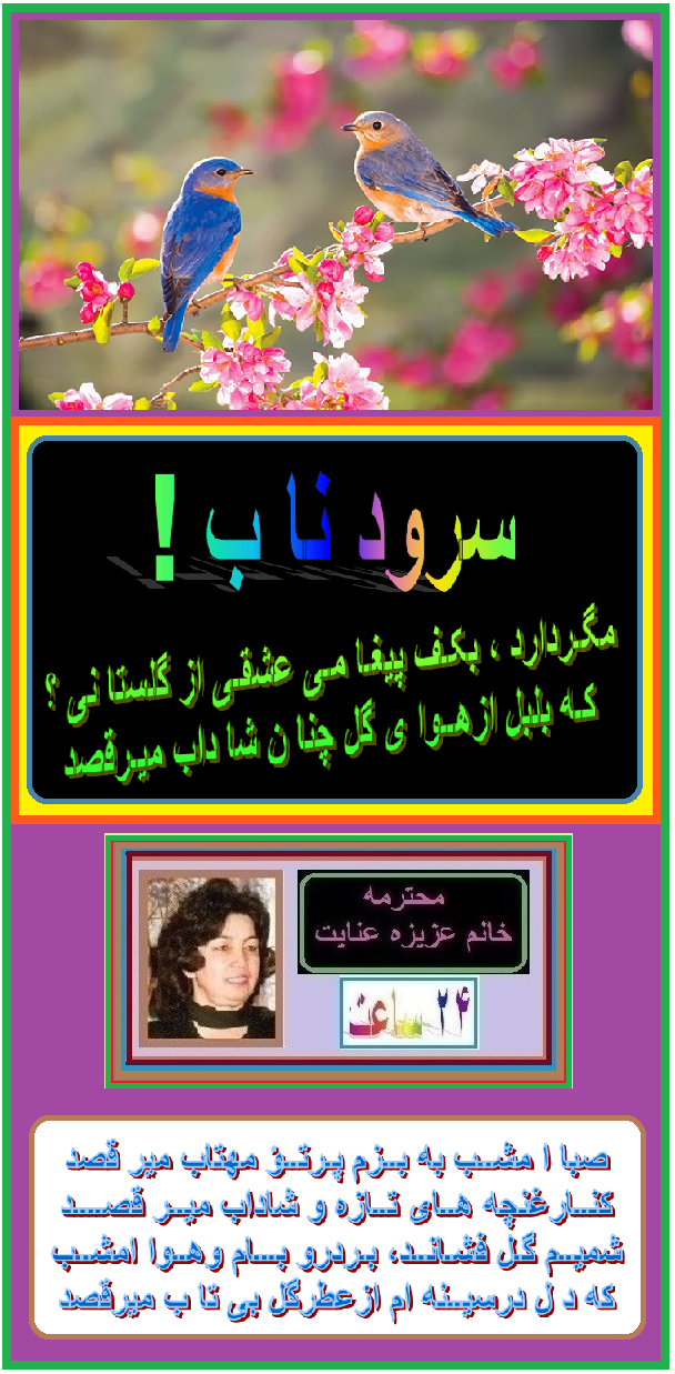 چندی قبل که متاسفانه کمپیوتر نداشتم ، خواهر عزیزم محترمه خانم عزیزه عنایت لطف نموده این گزارش را از طریق ایمیل به سایت ۲۴ساعت فرستاده بودند که با معذرت بعد از دوهفته که کمپیوتر جدید گرفتم این گزارش را تقدیم عزیزان نموده نشرکردم .