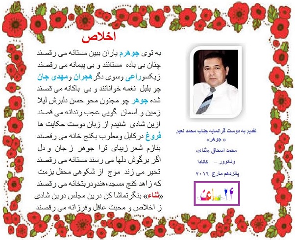 تقدیم به دوست گرانمایه جناب محمد نعیم « جوهر»