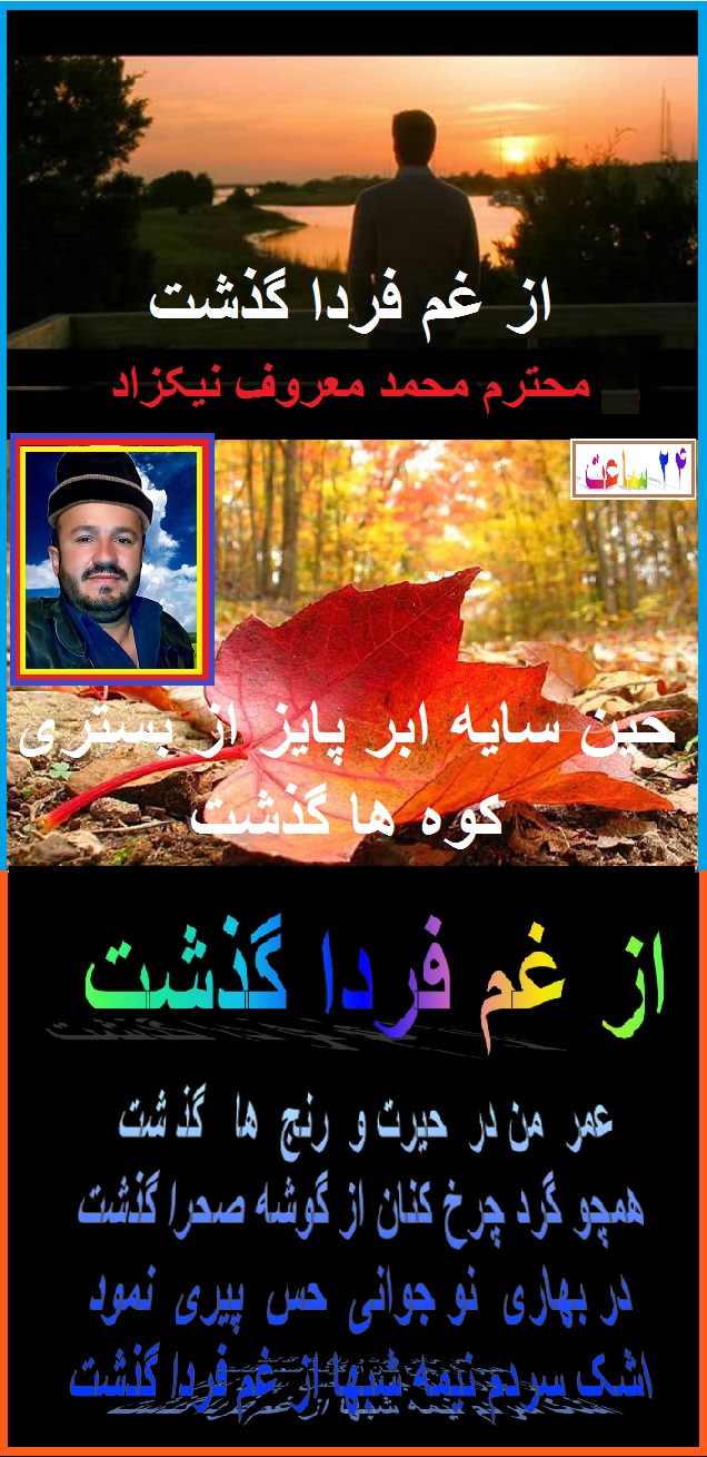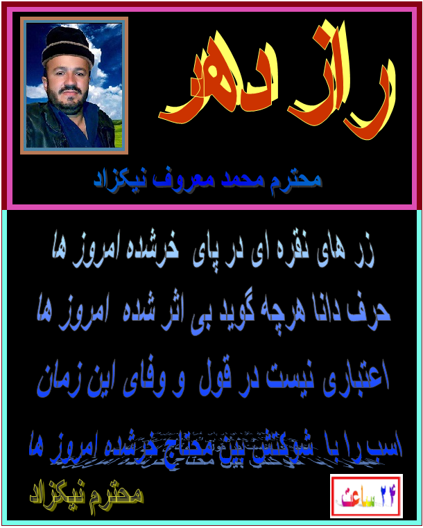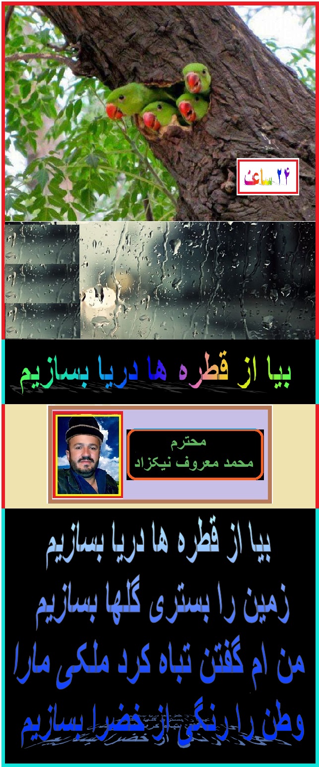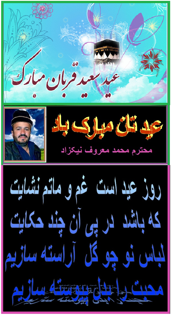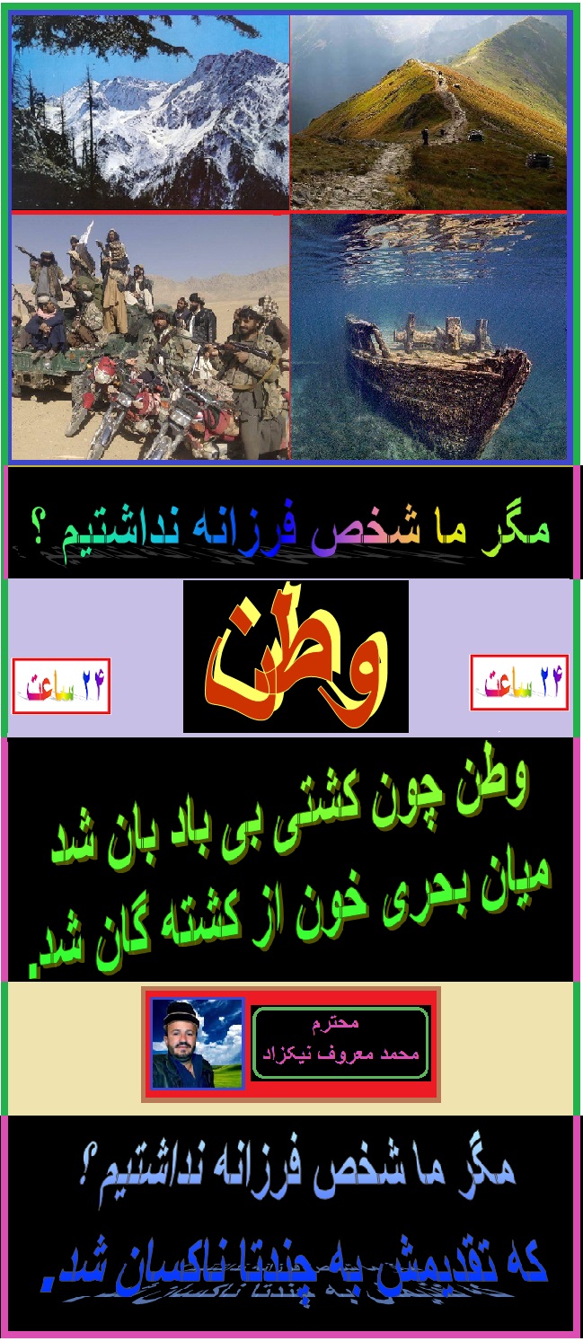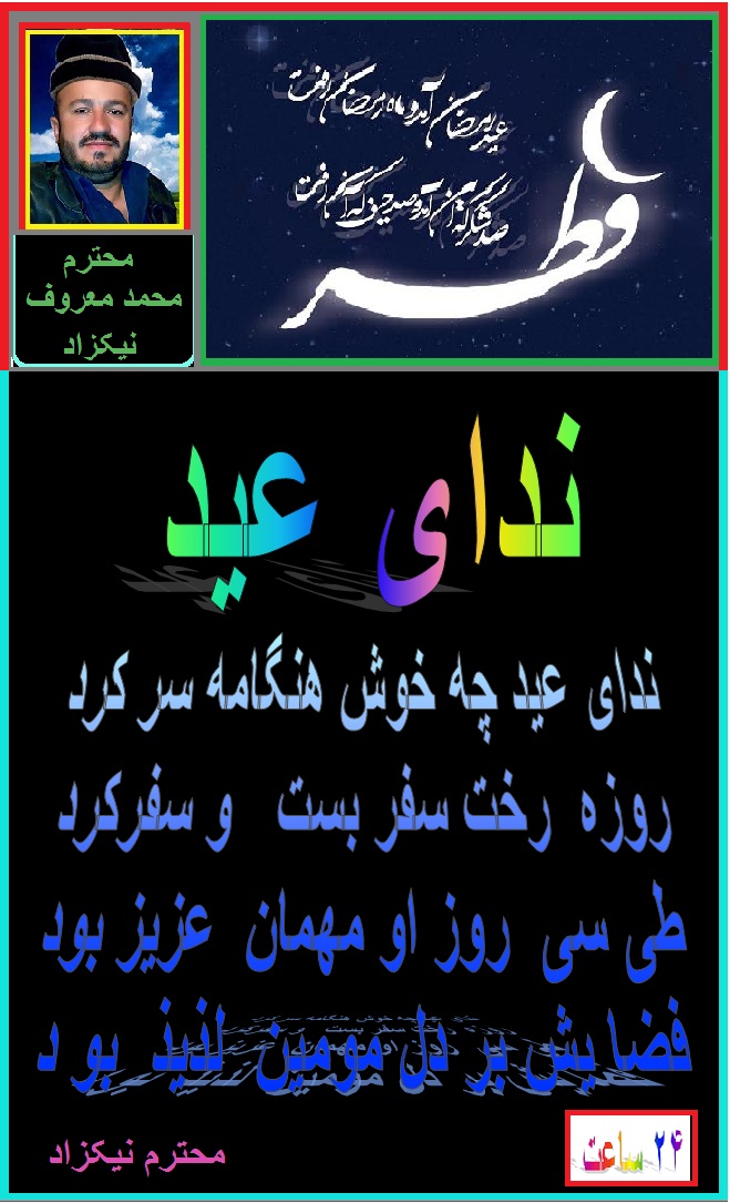 ضمن سلام و عرض معذرت از برادر عزیز و گرامی ام ، آقای محمد معروف نیکزاد که این سروده تانرا نسبت ازدیاد مطالب عزیزان دربین ایمیل های رسیده فراموش نمود ه بودم و به وقتش نشر نکردم . بازهم ماهی را هر وقت از آب بگیرید تازه است . این هم سروده زیبا تان . امید که روز های عید را بخوشی سپری کرده باشید. هر روز تان عید .