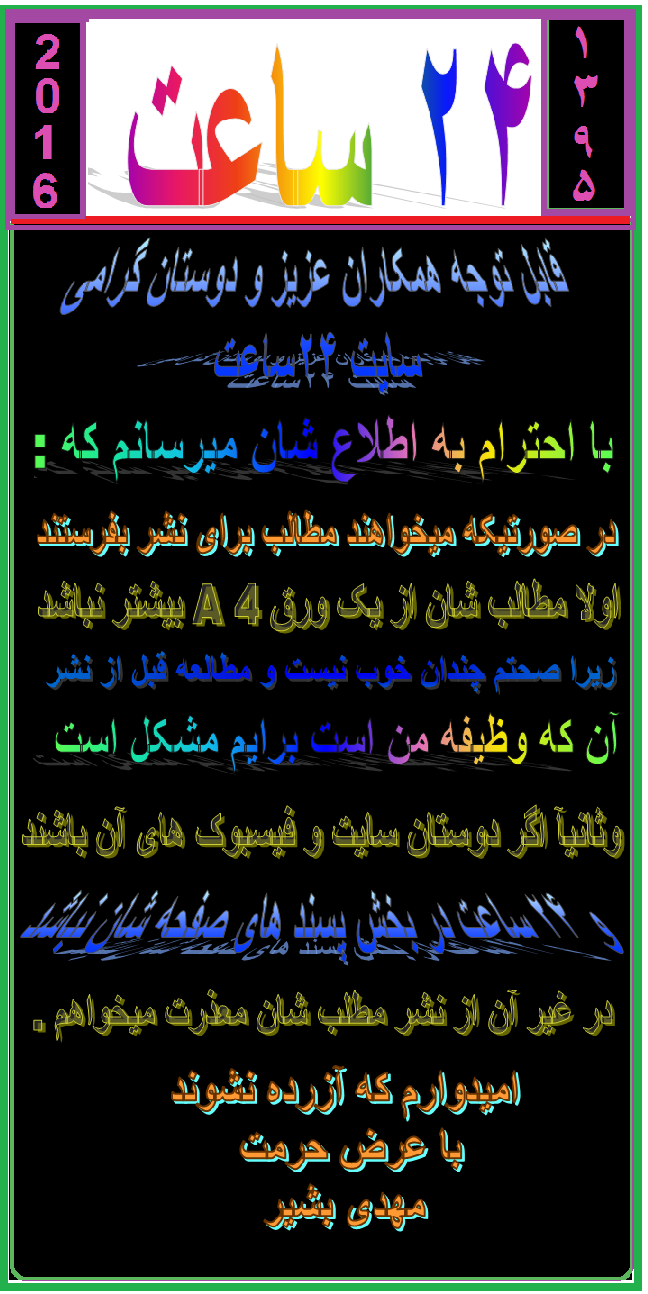 خواننده گان و همکاران عزیز سایت ۲۴ ساعت توجه نمایند