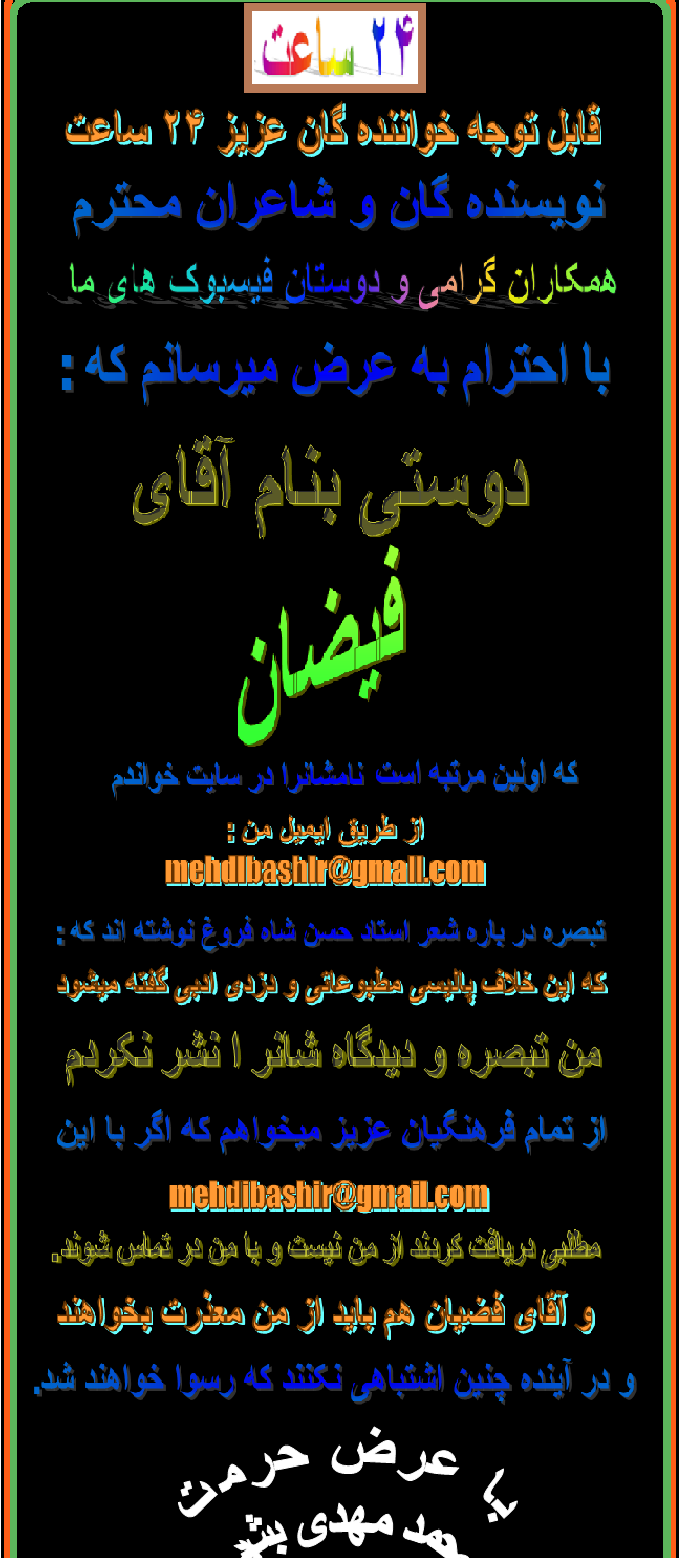 هموطنان عزیز ، خواننده گان محترم ، دوستان گرامی سایت ۲۴ ساعت و فیسبوک های آن !