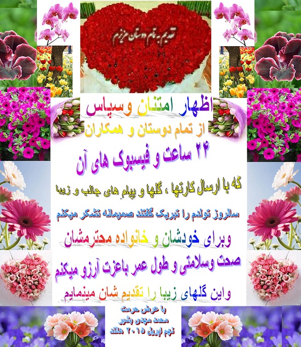 میخواهم کمی باشما درد دل کننم. خیلی دلم گرفته است . روز یکشنبه دهم ماه می 2015 مصادف بود بروز جهانی مادر که سایت ۲۴ ساعت هم به کمک شاعران عزیزو نویسنده ګان محترم از این روز تجلیل بعمل آورد . تعدادی از شاعران و نویسنده گان که الحمد لله مادران شان شکر زنده وسلامت اند با سروده های زیبا و گل های مقبول از این روز تجلیل شایانی نمودند و بدیدن مادران شان رفتند و تحایفی برایشان بردند و آنعده عزیزانیکه مادران گرامی شانرا از دست داده اند و با سرودن و نوشتن شعر های که از خواندنش اشک هر کسی که مادرش در کنارش نیست جاری میشد ویکی هم از آن جمله من بودم .