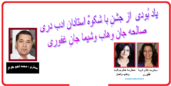 همچنان آقای جوهر عزیز این تبریکی و سروده را بمناسبت پیوند مشترک محمود جان امپراطور برایم فرستاده اند که تقدیم تان میکنم :