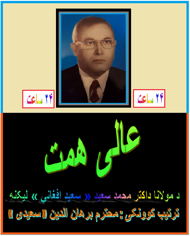 دوستان محترم امروزدو شنبه ۲۶ فبروری ۲۰۱۸ مصادف است با سی و سومین سال وفات شاد روان الحاج استاد محمد سعید « سعید افغانی » عالم ، نویسنده ، ادیب ،شاعر و سیاستمدار کشور ،ضمن عرض تسلیت و همدردی به خانواده های سعید افغانی ، به این مناسبت تعداد ی مقالات مواصلت نموده است که تقدیم شما عزیزان خواننده مینمایم و یاد و خاطره های استاد سعید افغانی را گرامی و روحش را شاد میخواهم.
