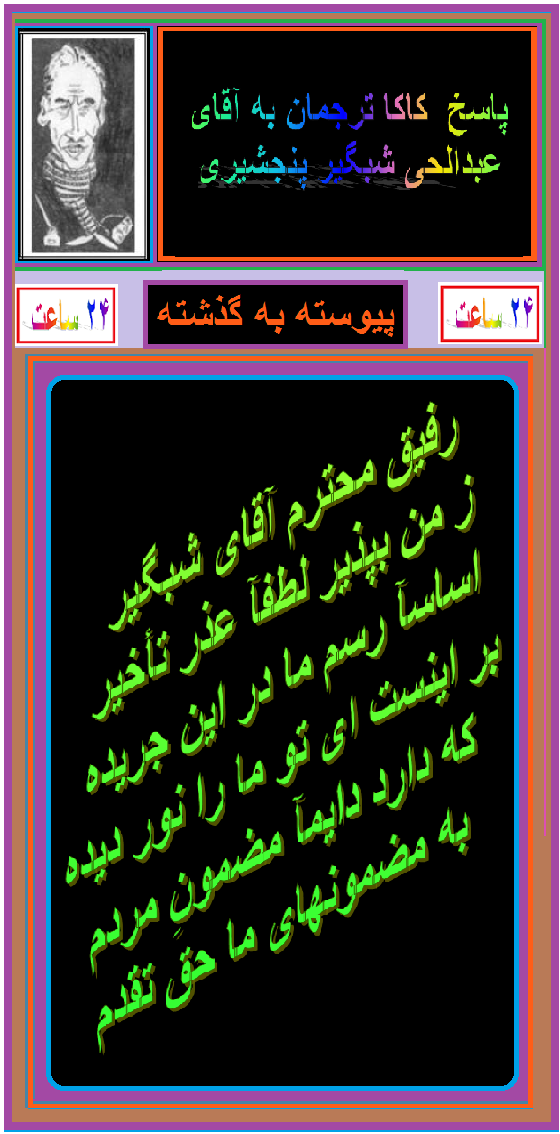 دوستان گرامی و خوانندگان عزیز اینک توجه شما را به پاسخ کاکاترجمان به جناب عبدالحی شبگیر پنجشیری جلب میکنیم: