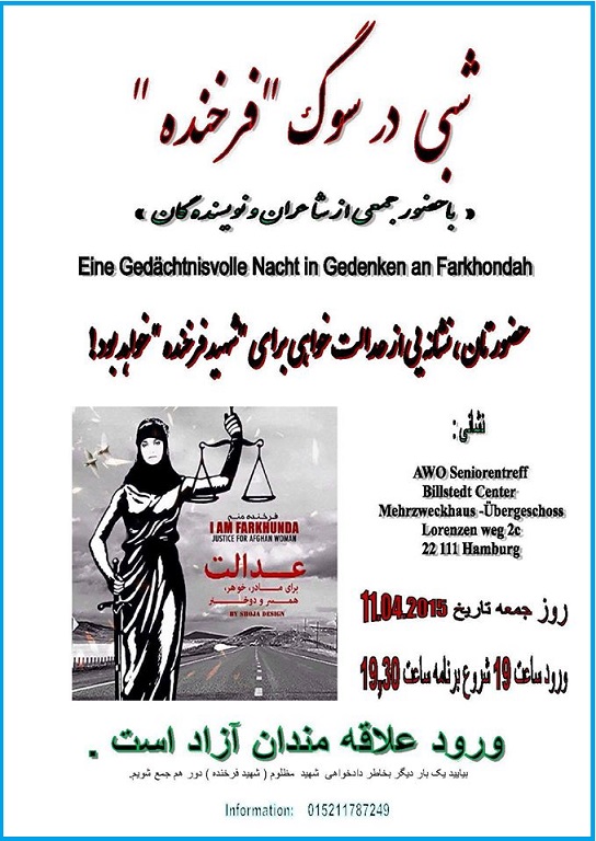 دوستان عزیز همانطور که اطلاع دارید چندی قبل در کشور آلمان خانم شراره بلخی با ضربات کارد توسط شوهر سابقه اش وحشیانه بطور فجیع به شهادت رسید و چند سال قبل در شهر کابل هم خانم فرخنده شهید توسط یک تعداد تفنگسالار ها و جنایت کاران با مشت ، لگد ، ضرب کارد ، سنگ و چوب به شهادت رسید ه بود و بعدا جسدش سوختنانده شد ولی متاسفانه دولت و حشت ملی تا کنون در قسمت قاتل و قاتلین وی طوریکه لازم بود عمل نکرد و مردم و فامیلش را فریب داد و نمیدانم که دولت آلمان در مورد قتل خانم شراره چی کرده است ؟